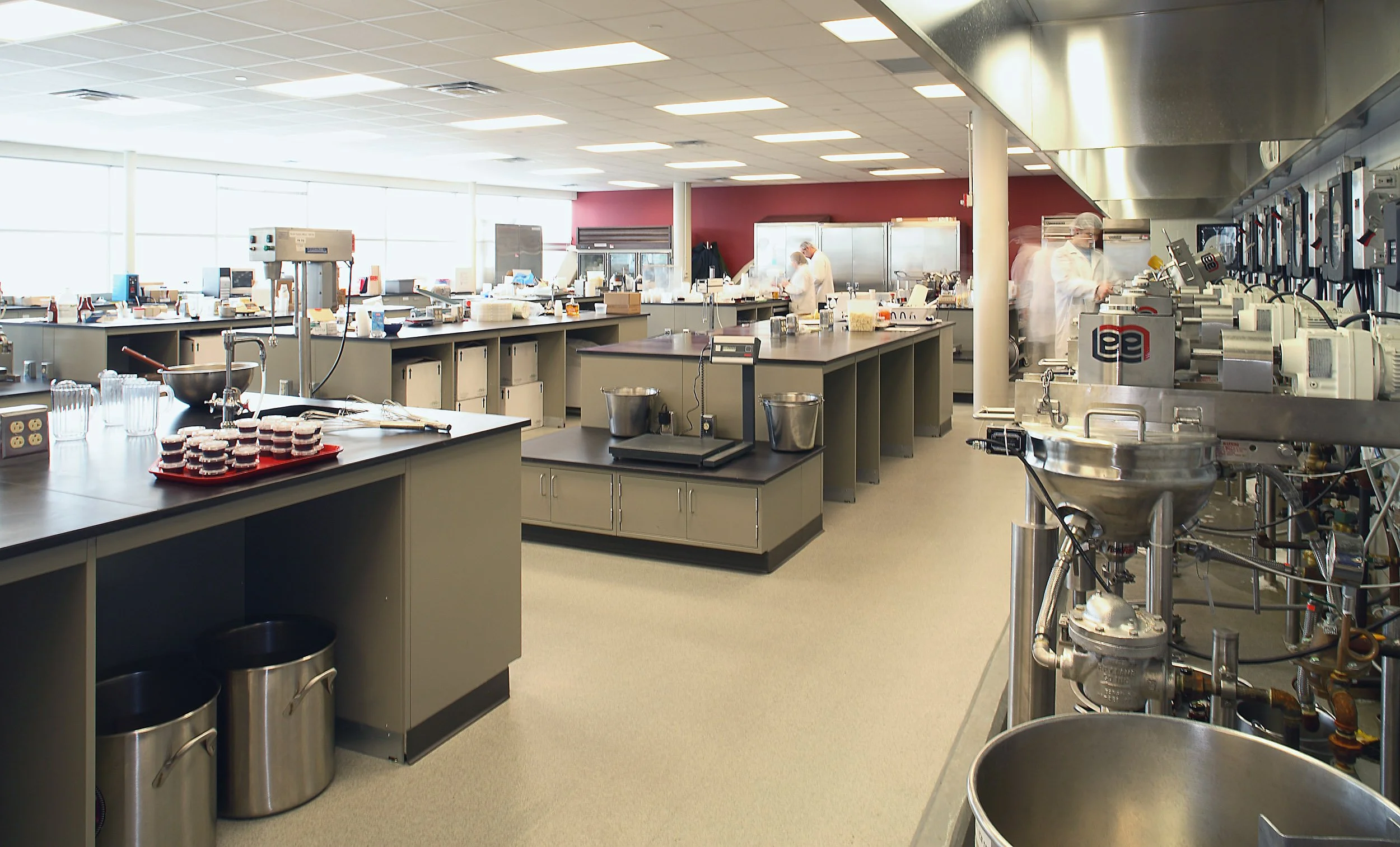 In addition to the main entrance and a new loading dock, the first floor of Building 1 contains a training center, tasting/sensory labs and primary laboratory facilities, including pilot plant, development labs, packing lab and a shared kitchen.