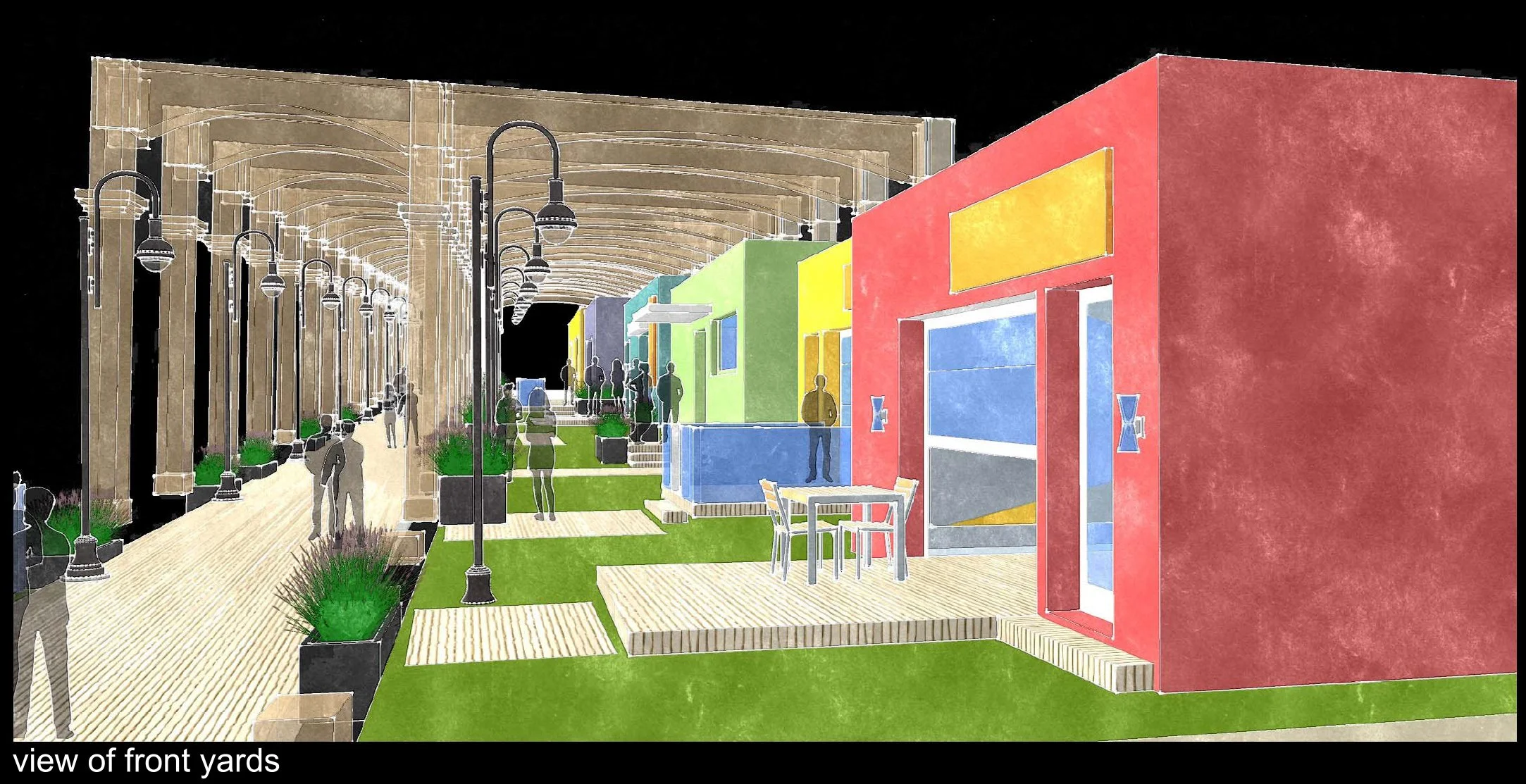 Public "squares" and parks are created along "Main Street" and extend beyond the bridge structure creating open air experiences not found elsewhere in the city. These public spaces support a variety of traditional neighborhood activities as well as ones unique to this arts district.