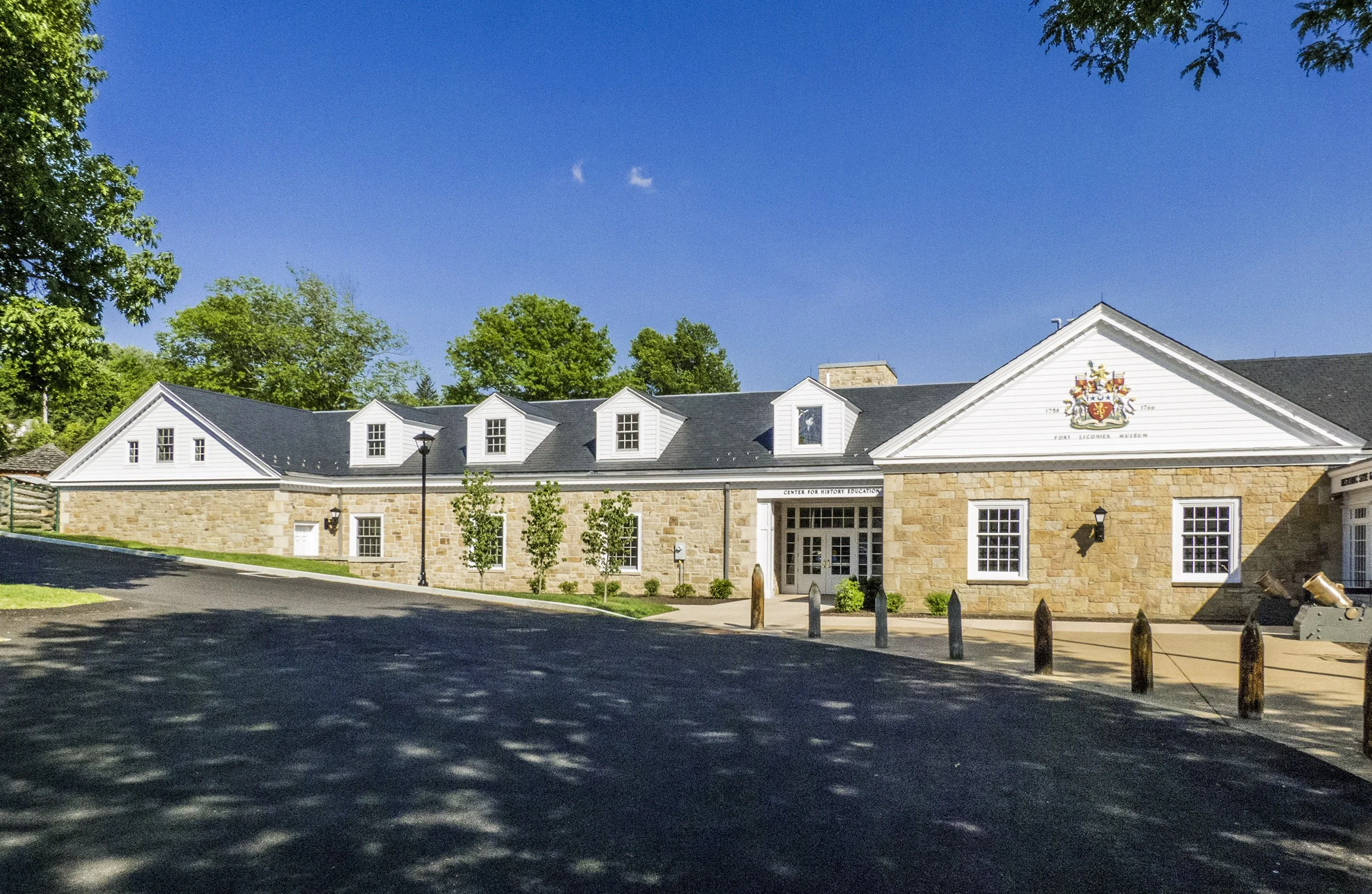 The original Fort Ligonier Visitor’s Center was built in the 1960’s and was expanded and modified several times since then. For this project, the owners asked for a large group meeting and educational space, a better flow of visitors through the building, larger staff offices and work spaces, an improved museum store, and modifications to most of the existing display spaces. The design solution fit these new functions into the same architectural language and massing of the original building. Our team coordinated with Paris Design and Capitol Museum Services for the museum display work. The result was to improve the visitor’s experience but keep the focus on the reconstructed Fort and the history of the site.