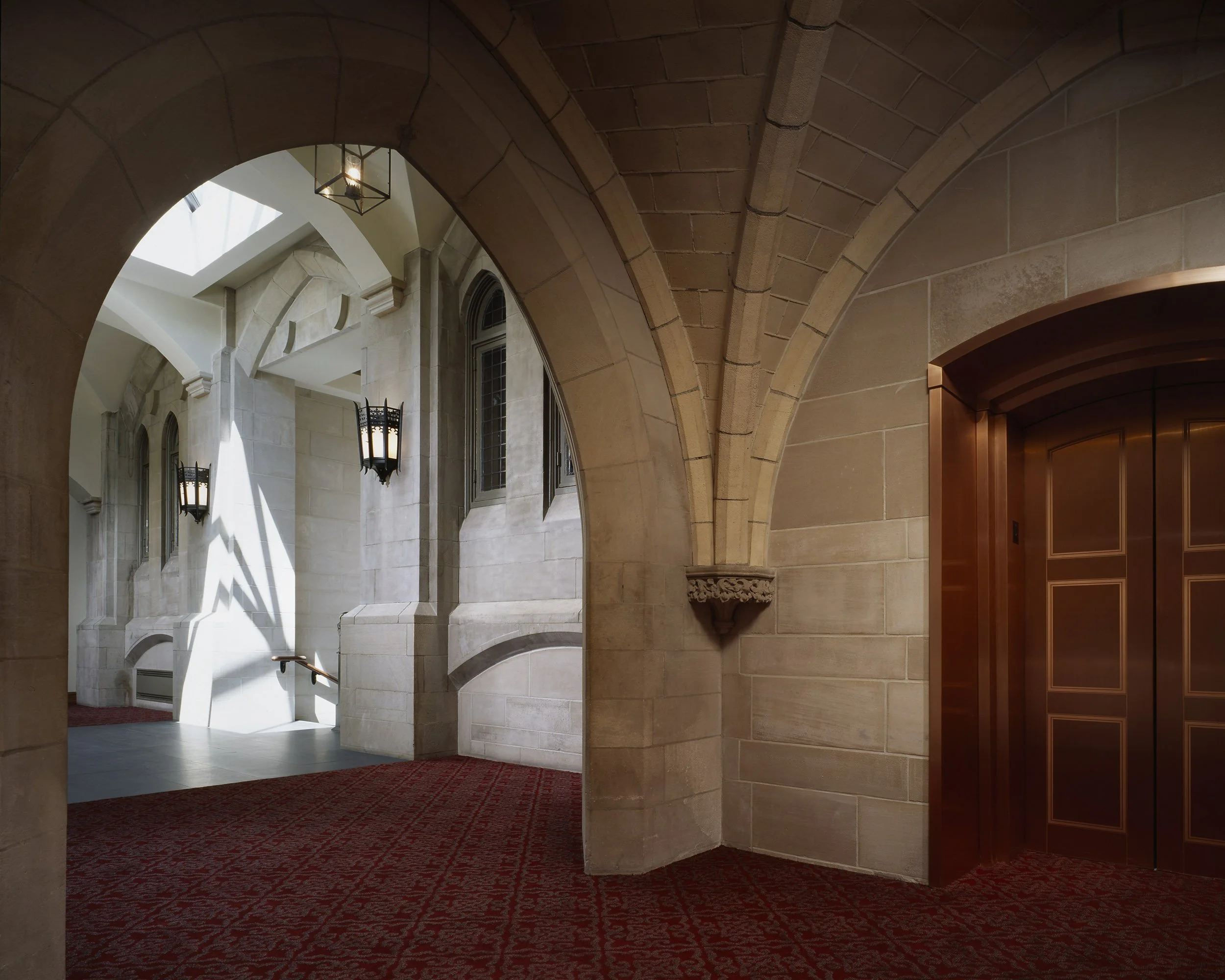 The sanctuary and exterior of this 1904, Ralph Adams Cram designed Church has been lovingly maintained as one of Pittsburgh's most significant architectural landmarks. However, the Parish House was no longer functioning efficiently. The renovation project created a new centrally accessible entrance, reconfigured the interior space and made the seven levels of the facility accessible through a series of ramps and an elevator. Detailing of the new work was designed to look "as if it has always been there."